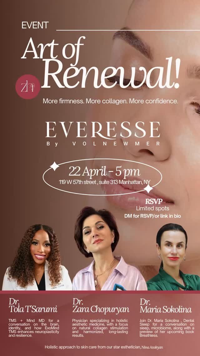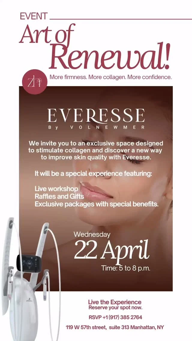 And I’ll share my approach to natural, modern rejuvenation — including a live look at Everesse by Volnewmer, a next-generation technology that helps support and restore collagen in a gentle, natural way.