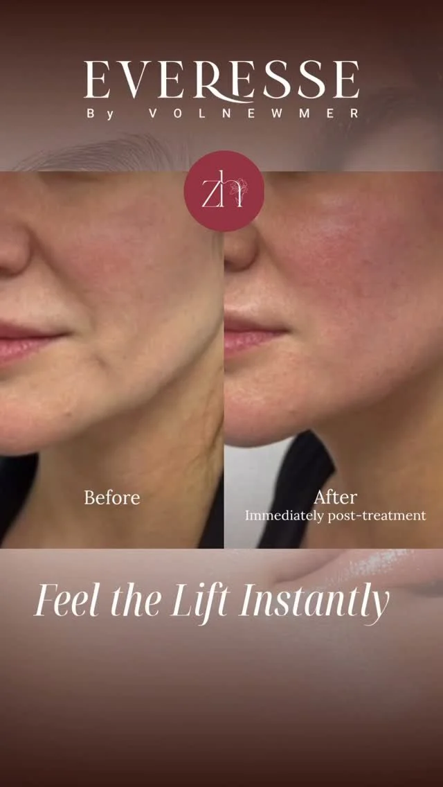 Everesse is a non-surgical, monopolar radiofrequency (RF) treatment that tightens skin, boosts collagen, and improves elasticity, offering immediate lifting results with zero downtime or discomfort.